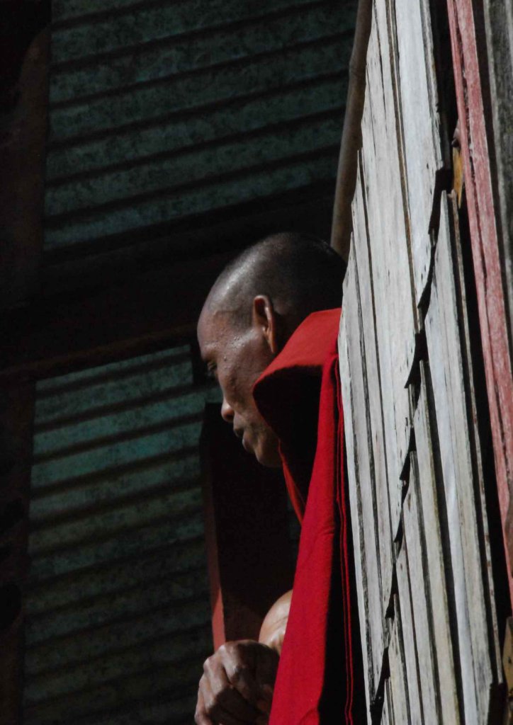 晨曦中,始建於西元前588年、至今已有2600年歷史的大金塔氣勢與艷陽一樣宏偉,群聚的鴉群亦增添了幾分嫵媚和神秘。從最初僅高20公尺,經過129位國王整修,到今日的112公尺高,塔頂上還有全世界最大的紅寶石和76克拉的鑽石,技藝精湛,攝人心魄;也是這片昔日的世界米倉、寶石之都、蝴蝶民族的信仰指標與生活信心。微風拂過,塔尖風鈴叮噹作響,幾位路過的僧侶認出了舍甘達西亞多,周圍不少信眾也紛紛伏地向他跪拜。